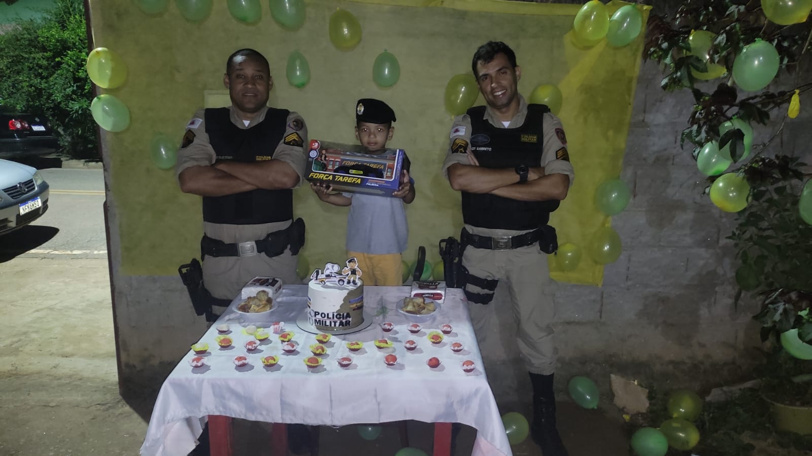 Os sargentos Barreto e Oélio Souza fizeram questão de marcar presença na festa, que teve como tema a Polícia Militar. A festa de João Lucas do Nascimento Silva aconteceu na última terça-feira (31), em Marilac.