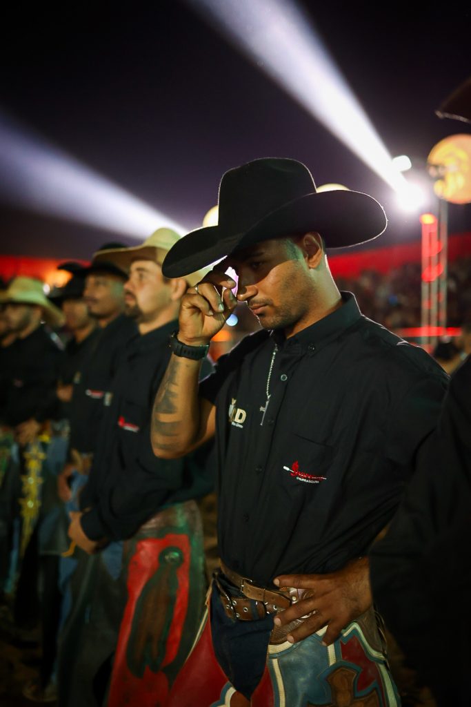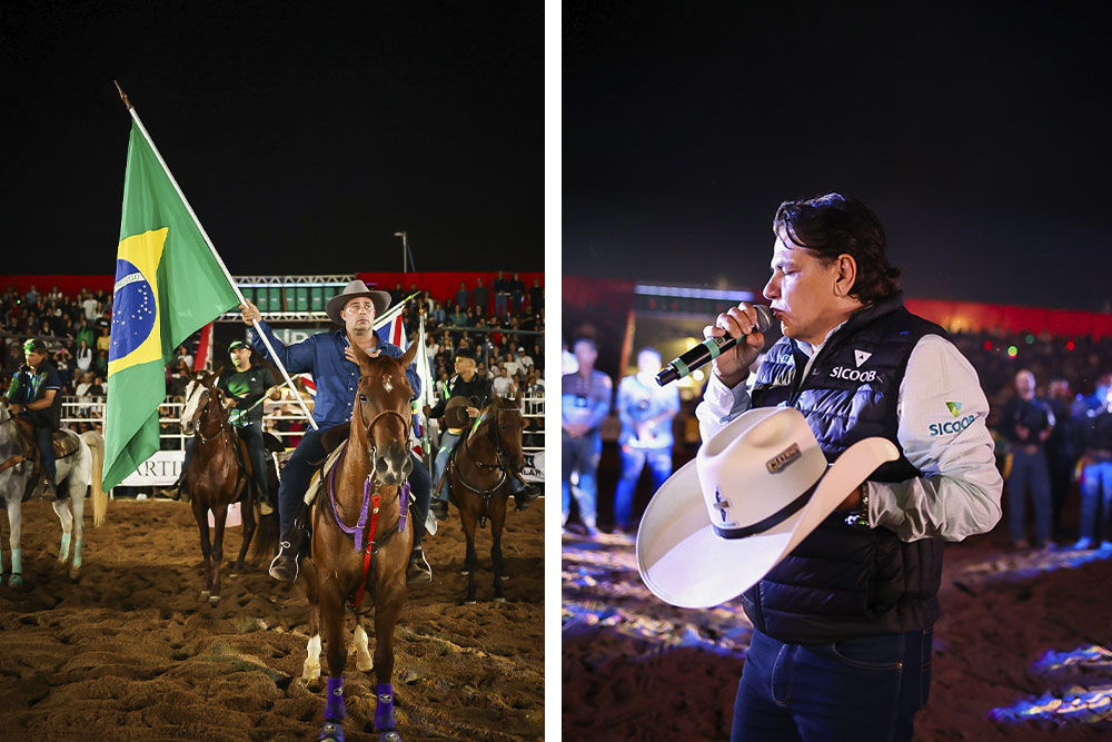 Abertura do rodeio na sexta-feira (5) e o locutor Gleydson Rodrigues. FOTOS: Pedro Lima/@pedrolimafoto_