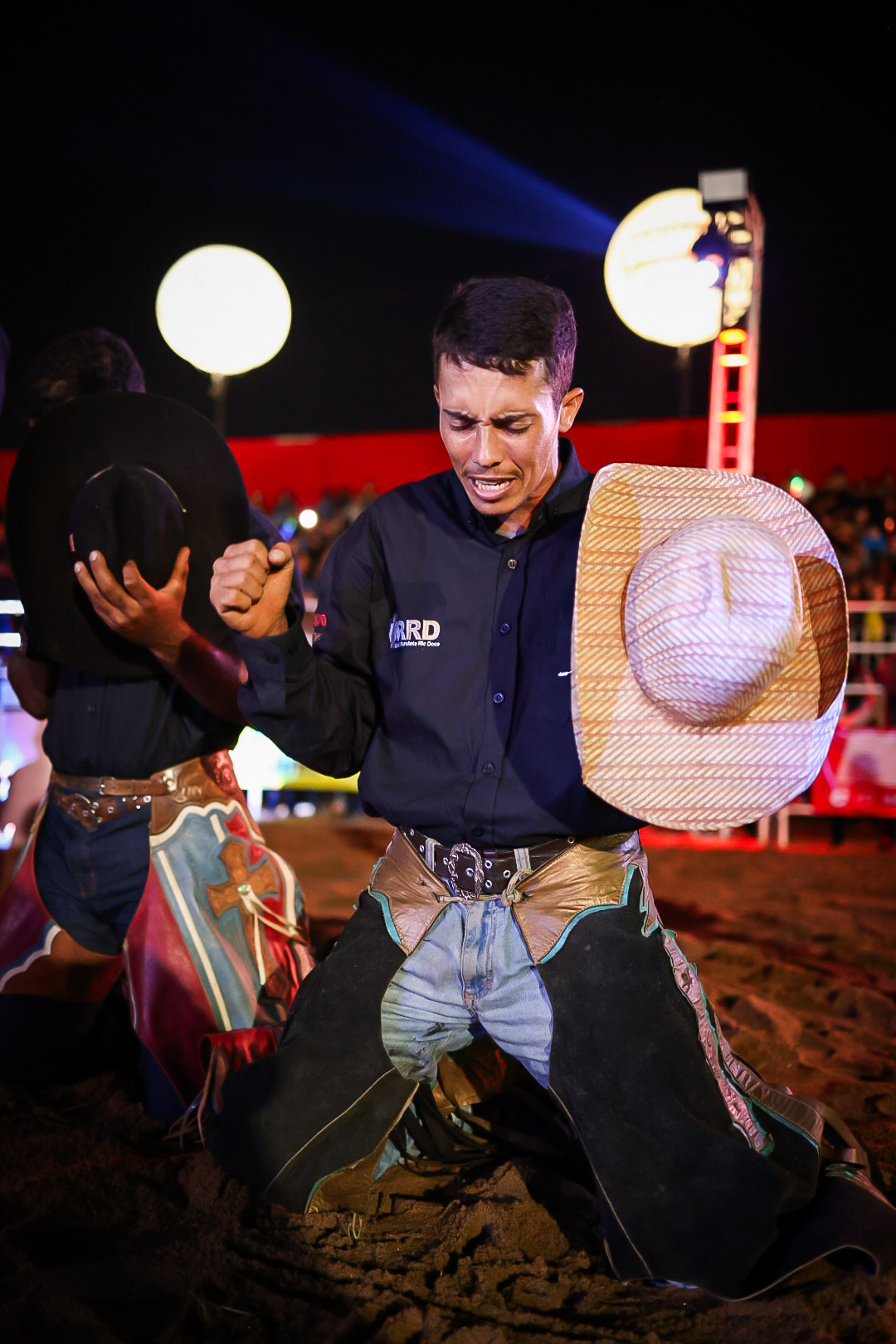 Abertura do rodeio na sexta-feira (5) e o locutor Gleydson Rodrigues. FOTOS: Pedro Lima/@pedrolimafoto_