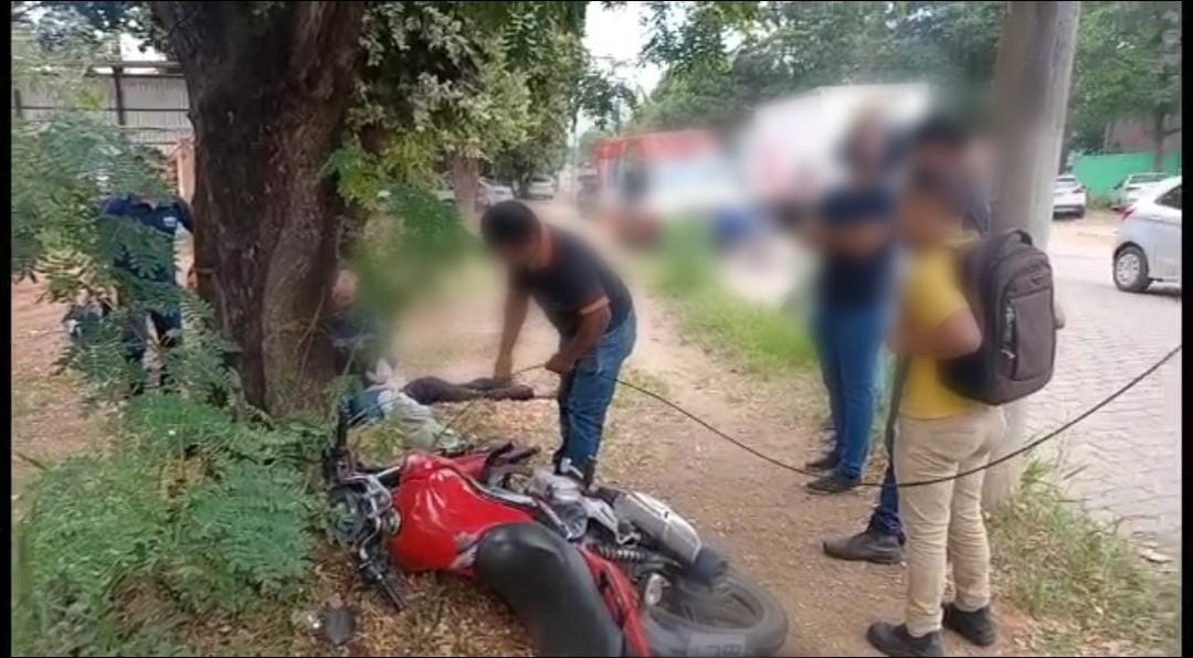 Uma mulher ficou ferida, na manhã desta quinta-feira (6), após perder o controle da moto que pilotava e bater contra uma árvore. O acidente aconteceu na avenida Industrial, no bairro Distrito Industrial, em Valadares.