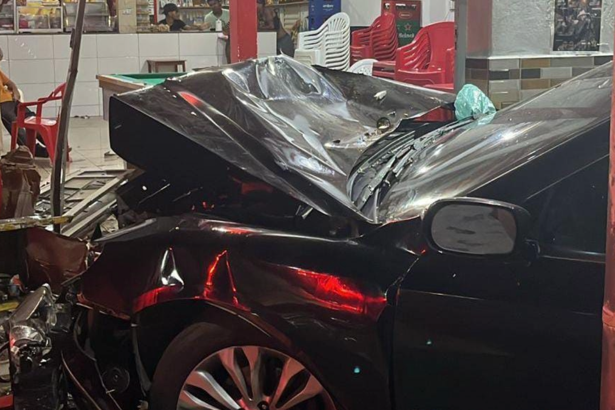 A Polícia Militar (PM) esteve no local da ocorrência de briga. Naquele momento, os militares ouviram um barulho e viram um veículo batendo contra a fachada do bar. Em seguida, o motorista saiu correndo a pé e fugiu.