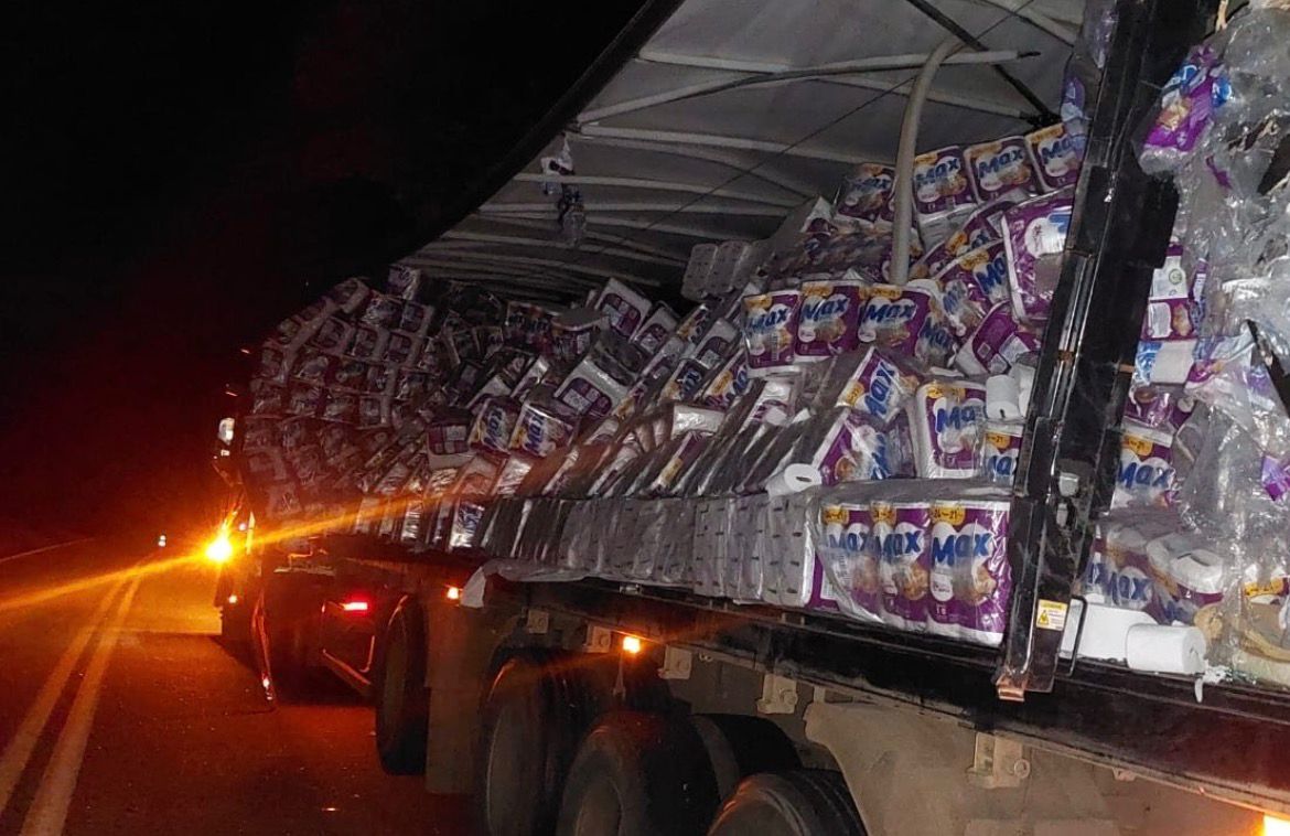 A batida também espalhou sobre a pista a carga de papel higiênico transportada pela carreta, o que exigiu trabalho de limpeza e prolongou a interdição parcial da rodovia.