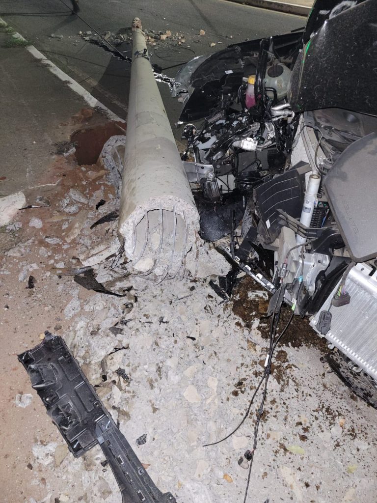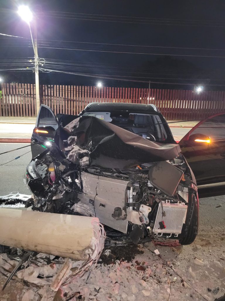 O veículo teve danos generalizados na parte da frente e o poste caiu. Por isso os militares interditaram a pista para que o veículo e o poste fossem retirados do local.