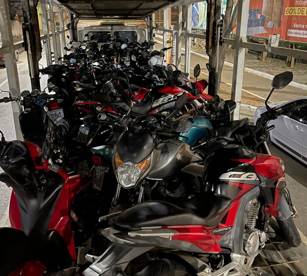 A Polícia Militar (PM) prendeu uma mulher e apreendeu diversas motocicletas durante a operação Impacto realizada nessa segunda-feira (12), em Governador Valadares. Segundo a PM, das motocicletas removidas, 52 foram por infrações diversas e um por se tratar de um produto roubado. A motociclista que pilotava a moto roubada foi detida.