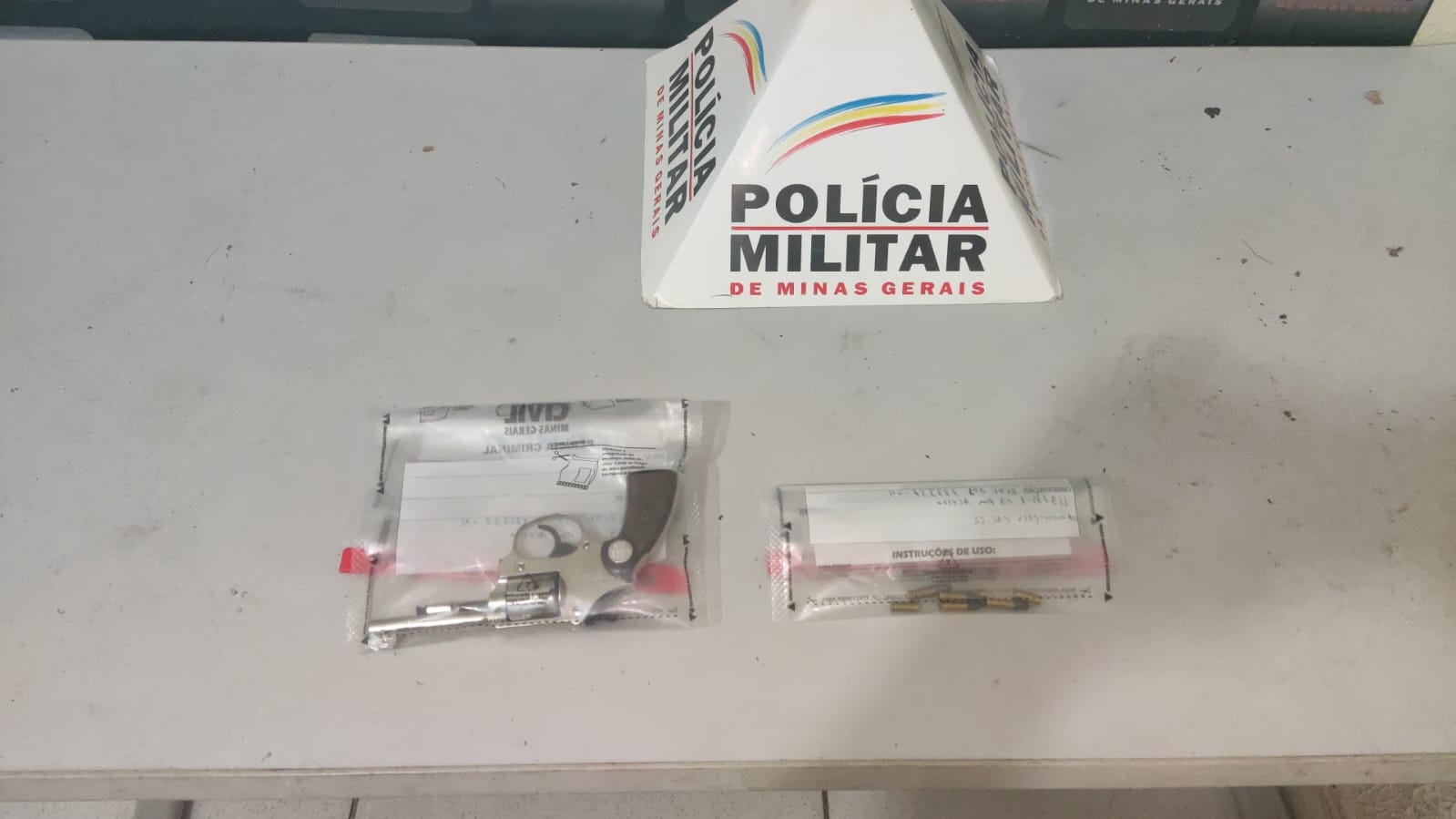 No imóvel, a polícia fez buscas e encontrou um revólver de calibre 22 dentro de um cesto de roupas, além de sete cartuchos. Das munições, duas estavam deflagradas e as outras cinco intactas. Conforme o Boletim de Ocorrência, a mulher relatou à PM que houve uma discussão entre ela e o rapaz, em local público, e disse que o jovem a teria agredido com um soco.