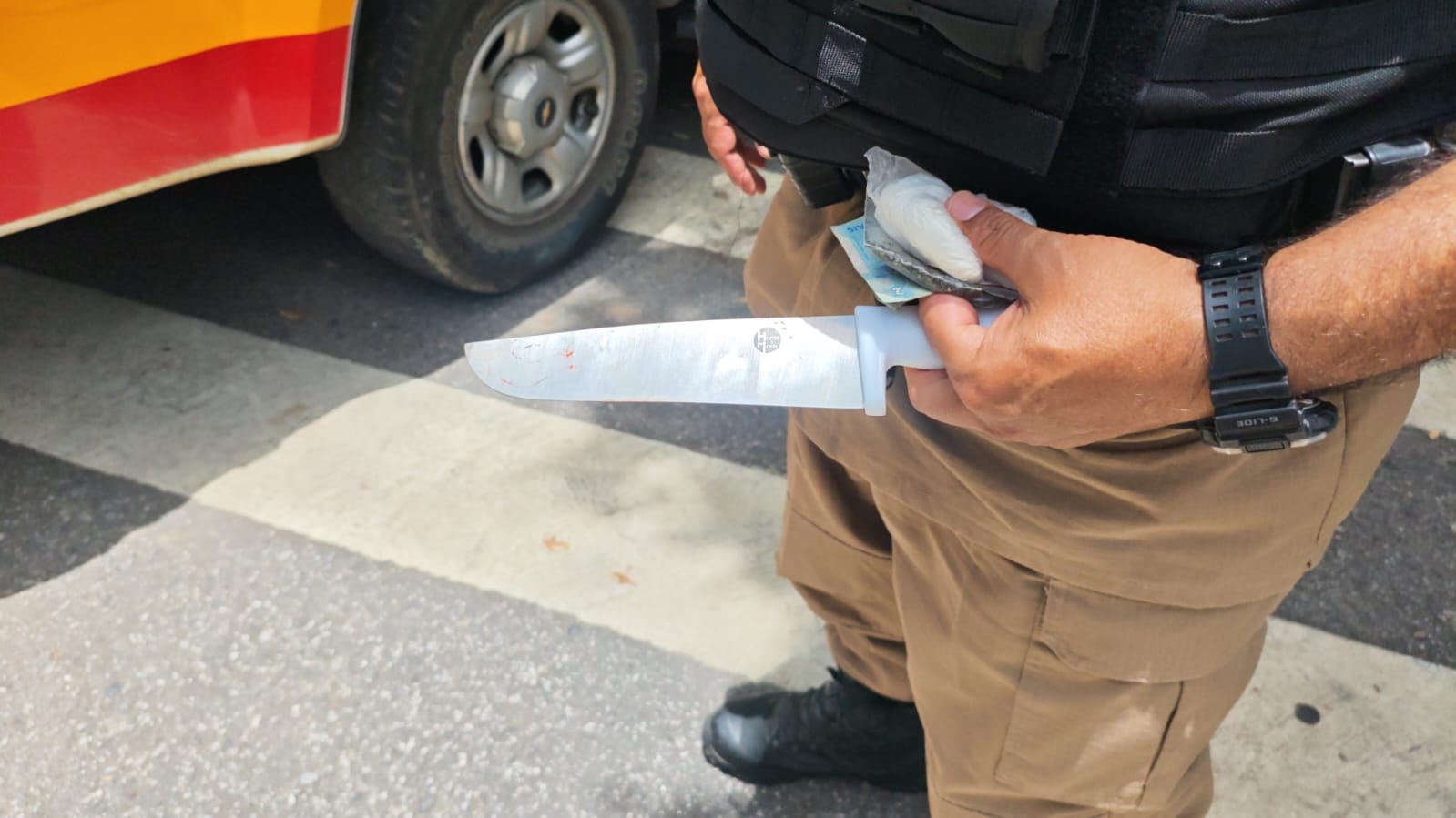 Durante buscas no imóvel, os policiais localizaram uma porção de substância semelhante à cocaína e outra semelhante à maconha, que foram assumidas pelo homem. A faca usada na briga também foi apreendida.