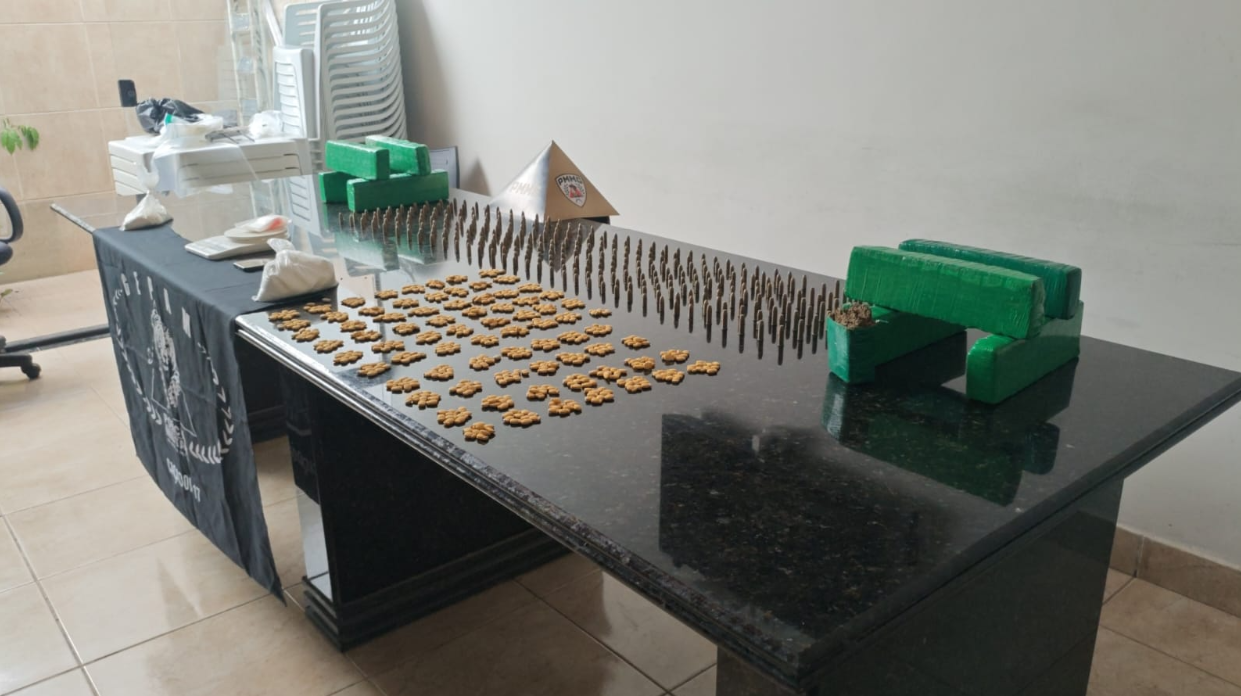 Durante a abordagem, os policiais apreenderam aproximadamente oito barras de maconha, diversos comprimidos de ecstasy e uma quantidade significativa de munições, o que chamou a atenção dos militares.