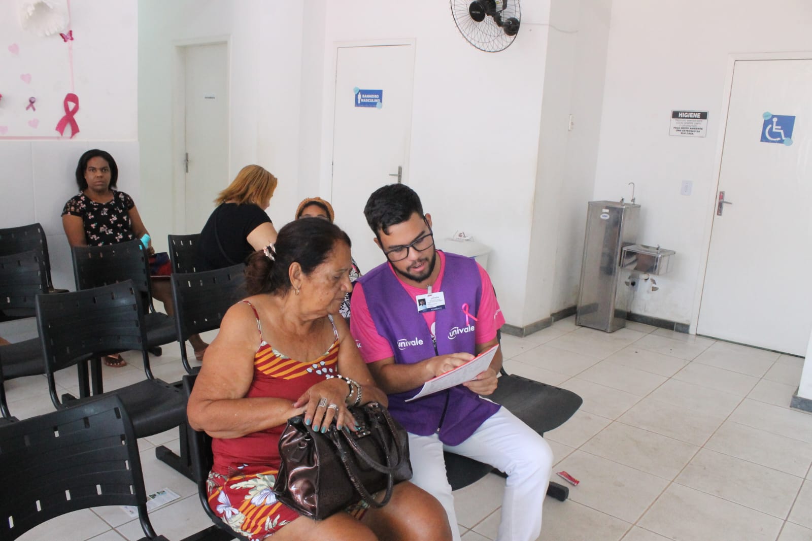 GOVERNADOR VALADARES – Durante todo o mês, a campanha do Outubro Rosa é dedicada à conscientização e prevenção do câncer de mama. De acordo com a Santa Casa de São Paulo, esse é o tipo que mais mata mulheres no Brasil e no mundo. Por isso, sabendo da importância dessa conscientização, alunos dos cursos do Núcleo de Saúde da UNIVALE se reuniram em uma Unidade Básica de Saúde no Conjunto Sir, em Governador Valadares, para oferecer diversos serviços gratuitos para os moradores. A ação foi uma parceria com a Prefeitura de Governador Valadares.