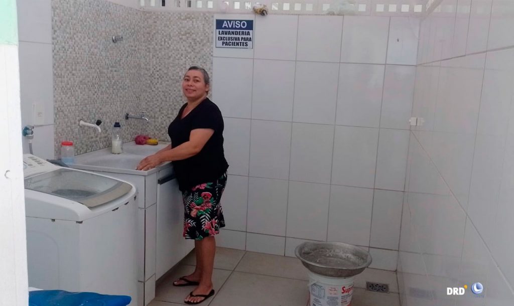 Na manhã desta terça-feira (4), dona Almira aproveitava a lavanderia do abrigo para trabalhar um pouquinho lavando suas roupas. Ela se hospeda no abrigo de segunda a sexta-feira, e nos fins de semana volta para sua cidade de origem.