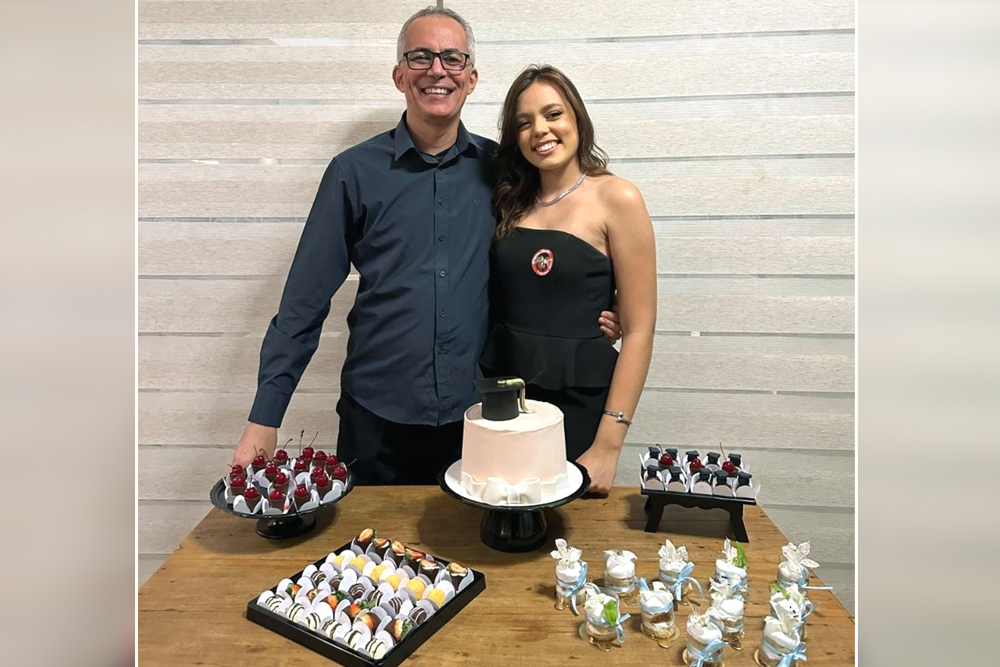 O pastor Wendel Neves, a esposa Giane e a filha Glenda Neves têm motivos de sobra para celebrar o mês de julho. Além dos três festejarem seus aniversários, Glenda se formou em Publicidade e Propaganda pela Univale. Ela foi reconhecida como aluna destaque da turma e escolhida pela reitora Lissandra Lopes Coelho Rocha para receber o capelo durante a solenidade de colação de grau, representando sua turma. Parabéns a esta família! Desejo um novo ciclo de muitas vitórias.