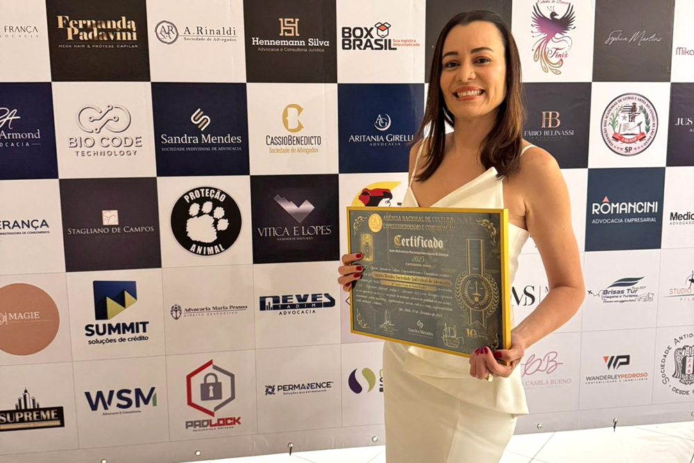A advogada Sandra Mendes segue colecionando reconhecimento e admiração. Neste mês de dezembro, ela recebeu mais uma importante distinção: o Selo Referência Nacional, em São Paulo, coroando sua trajetória de excelência, competência e credibilidade. Para completar esse momento especial, Sandra também marcou presença em um evento belíssimo, repleto de sintonia, conexões e inspiração, reafirmando seu protagonismo e sua atuação de destaque. Que venham novas conquistas — fruto de talento, dedicação e uma carreira construída com brilho e autoridade.
