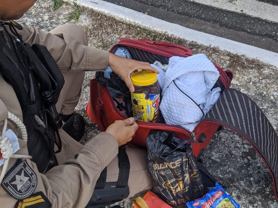 Durante a abordagem, a passageira identificada apresentou sinais de nervosismo e inquietação, o que chamou a atenção dos policiais. Diante disso, durante a abordagem, nas bolsas da suspeita, que estavam no compartimento de cargas do veículo, foi encontrada dentro de um pote de achocolatado, 64 tubos de esppendorf vazios, comumente utilizados para acondicionar drogas.