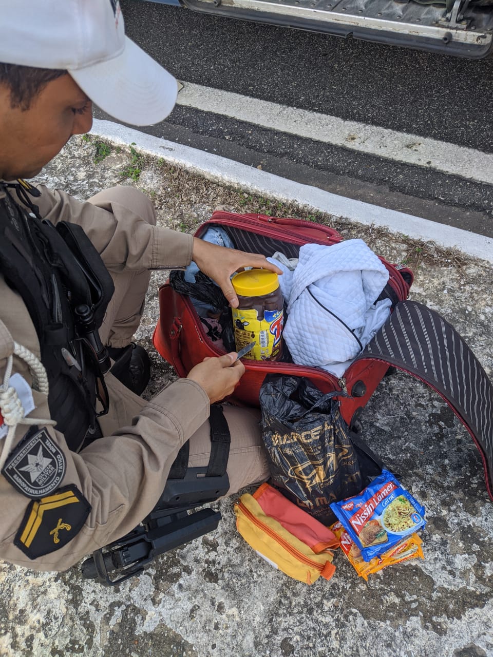 Durante a abordagem, a passageira identificada apresentou sinais de nervosismo e inquietação, o que chamou a atenção dos policiais. Diante disso, durante a abordagem, nas bolsas da suspeita, que estavam no compartimento de cargas do veículo, foi encontrada dentro de um pote de achocolatado, 64 tubos de esppendorf vazios, comumente utilizados para acondicionar drogas.