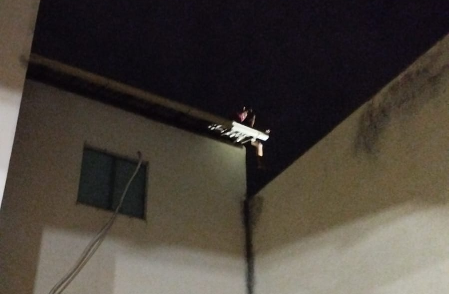 A fuga só terminou quando o condutor perdeu o controle da direção e arremessou a caminhonete contra o portão de um imóvel, destruindo parte da estrutura. Mesmo após a colisão, ele abandonou o veículo e tentou escapar pulando pelos telhados de residências próximas, causando danos a propriedades e ampliando o perigo para moradores.