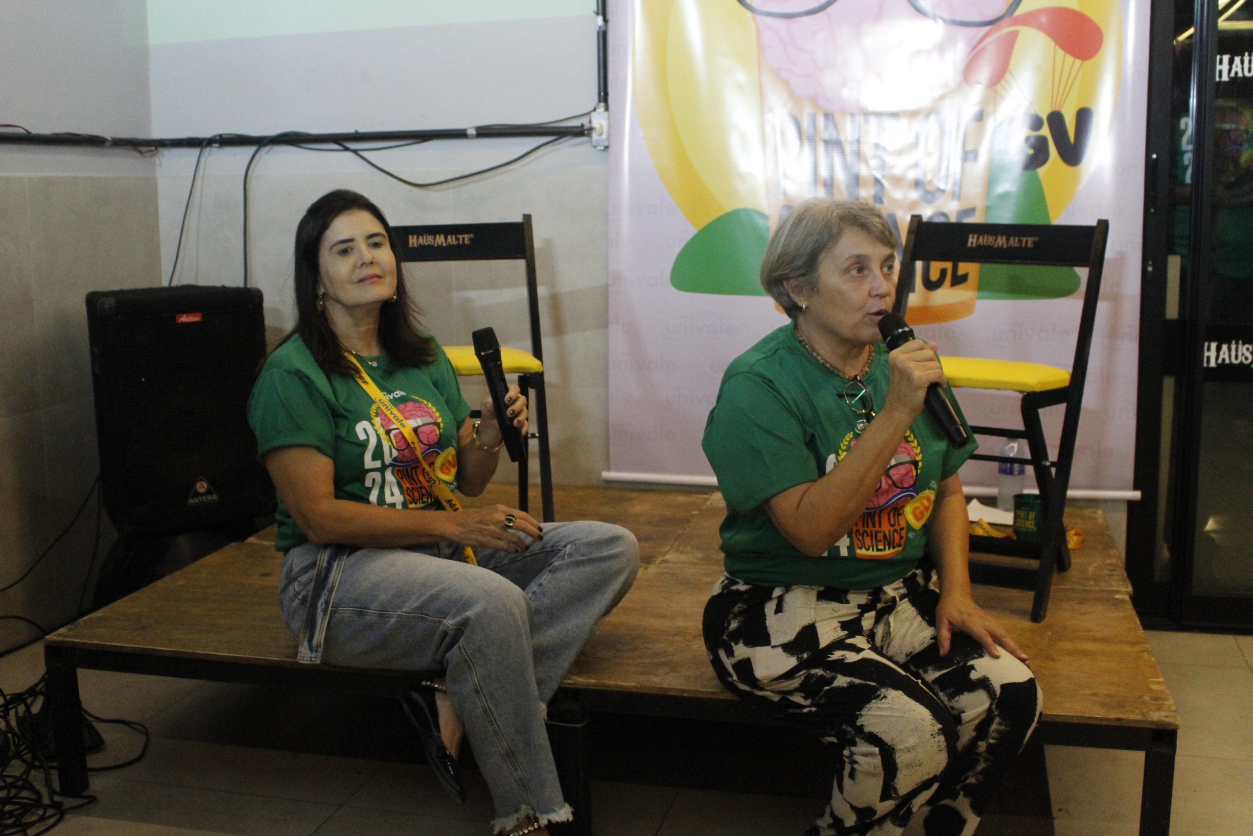 Duas apresentações inauguraram o Pint of Science 2024. A primeira, com o nome “Uma questão de pele – racismo e saúde”, foi conduzia pelas professoras Maria Terezinha Vilarino e Suely Rodrigues, ambas do mestrado em Gestão Integrada do Território (GIT), que discutiram o racismo no atendimento em saúde pública.