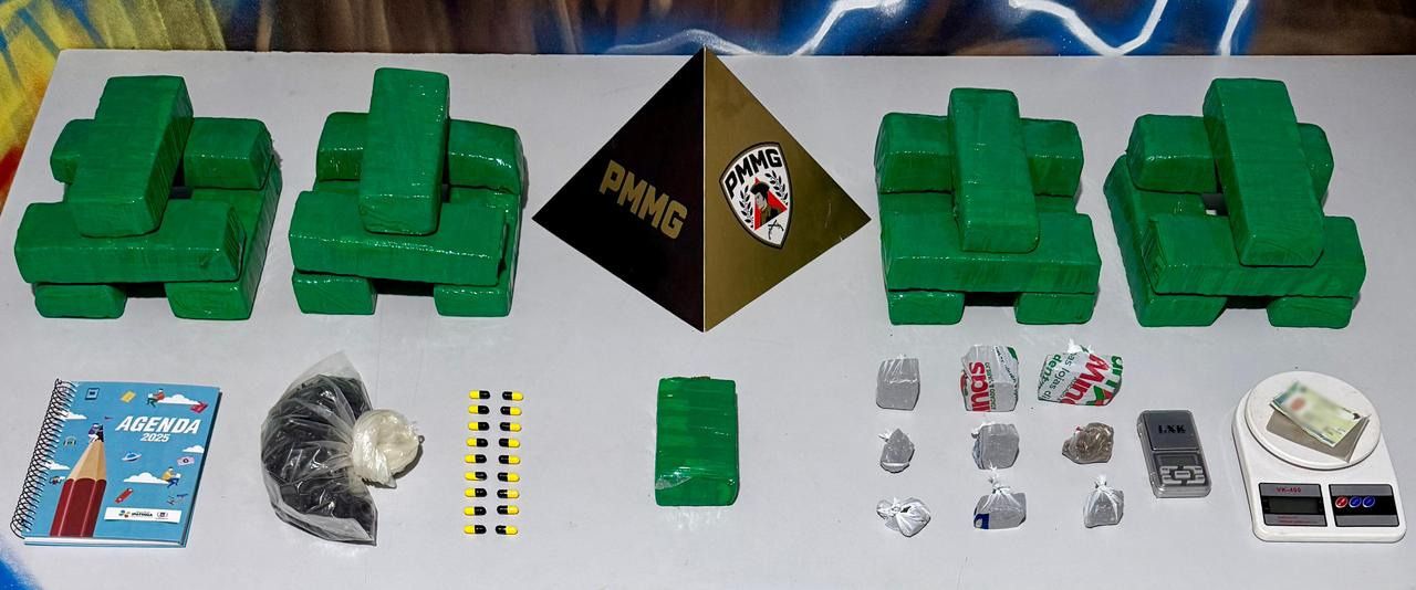 Além dos 25 quilos de maconha, os militares localizaram durante as buscas nove porções fracionadas da mesma substância, 18 comprimidos com características semelhantes a drogas sintéticas, duas balanças de precisão, microtubos e um caderno com anotações ligadas à movimentação financeira do tráfico.