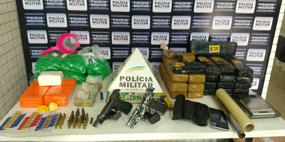 Na operação a PM apreendeu 2 pistolas calibre 380, 3 carregadores, 100 munições calibres 380, 38 e 25, R$ 67.526.