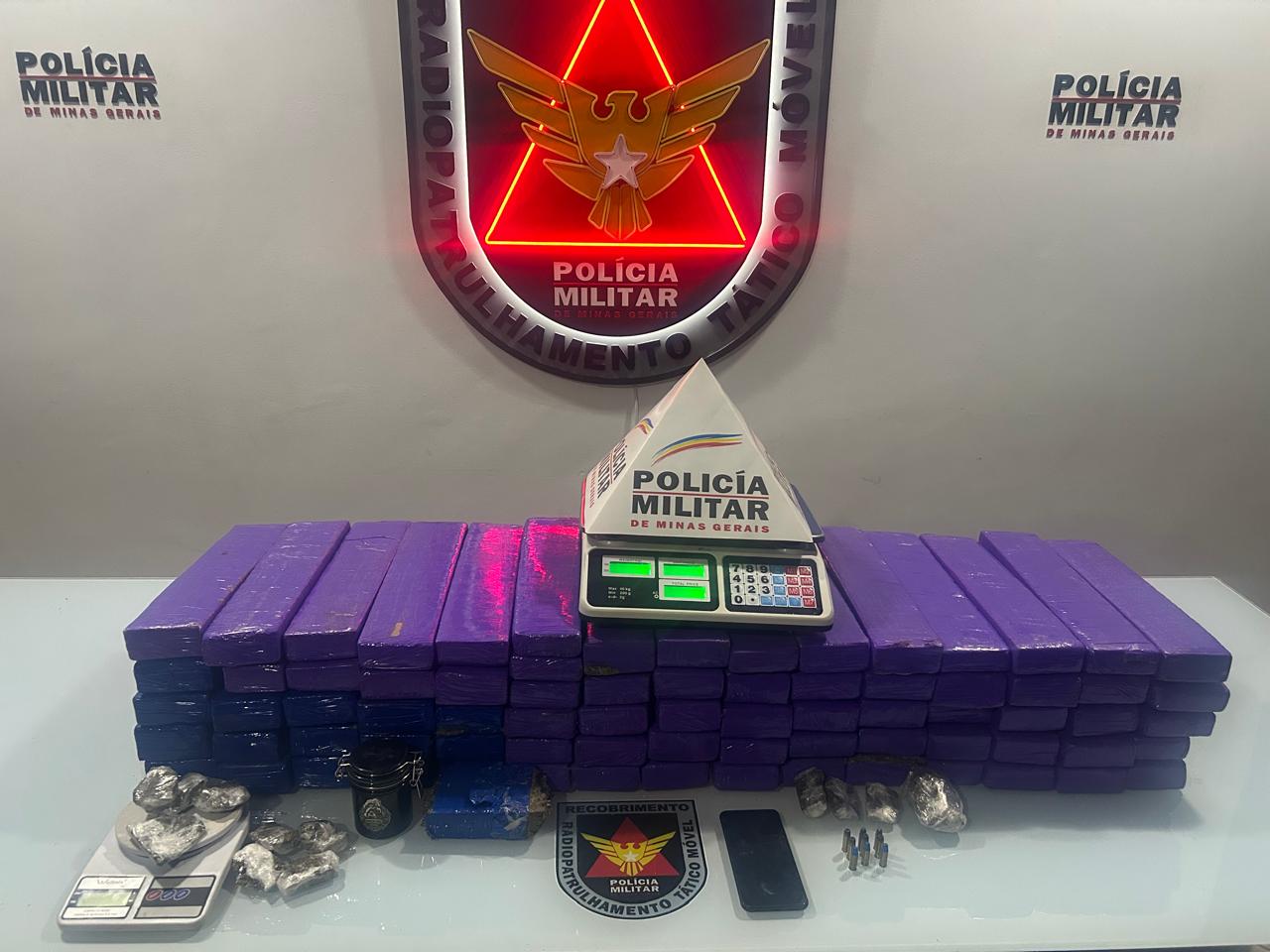 Em continuidade à ocorrência, outras equipes da PM foram até o imóvel de onde o carro havia saído. No local, foram localizadas mais 36 barras de maconha, 12 tabletes menores, nove munições e duas balanças de precisão. O morador, de 18 anos, assumiu a propriedade dos entorpecentes e das munições.