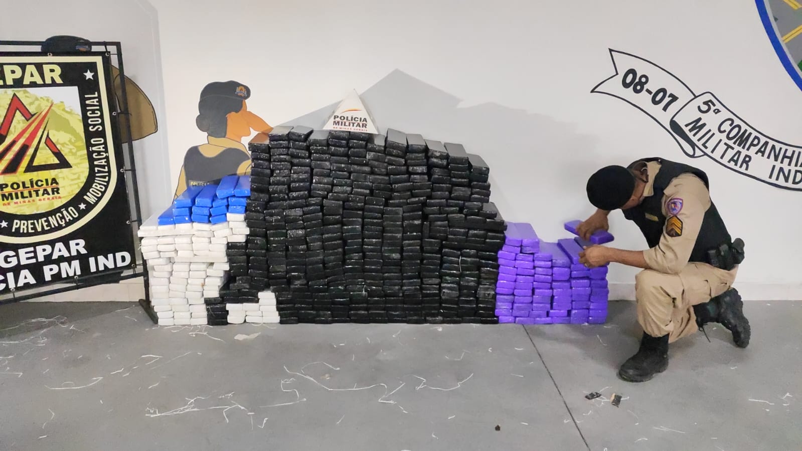 Após receberem informações do carregamento de droga, militares da 5ª Cia PM Independente montaram uma operação e abordaram o veículo suspeito.