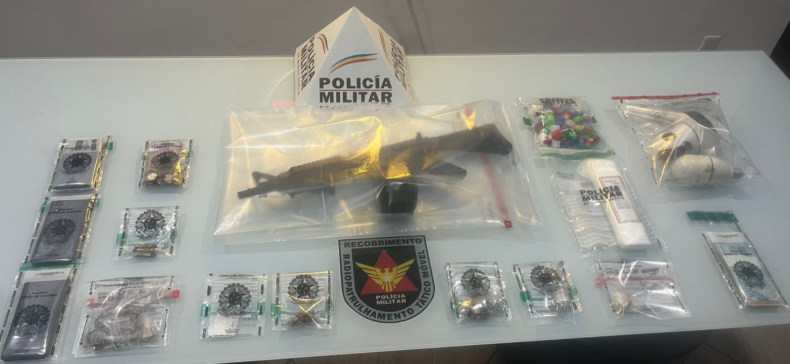 GOVERNADOR VALADARES – Dois homens foram presos na noite desta quarta-feira (6) durante uma operação da Polícia Militar no bairro São Geraldo, em Governador Valadares. A ação resultou na apreensão de um simulacro de carabina calibre 5.56, entorpecentes, munições e dinheiro em espécie.