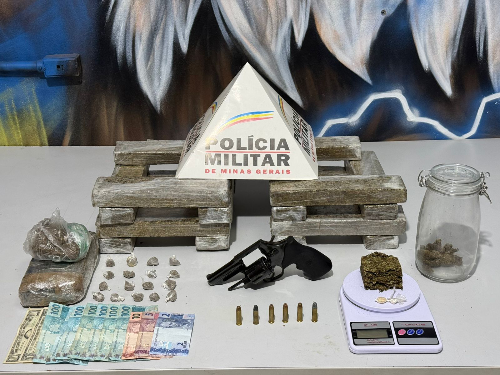 As diligências continuaram até a residência do condutor da motocicleta, em Coronel Fabriciano, onde os militares encontraram um revólver calibre .38 com numeração suprimida e cerca de dois quilos de maconha nas proximidades.