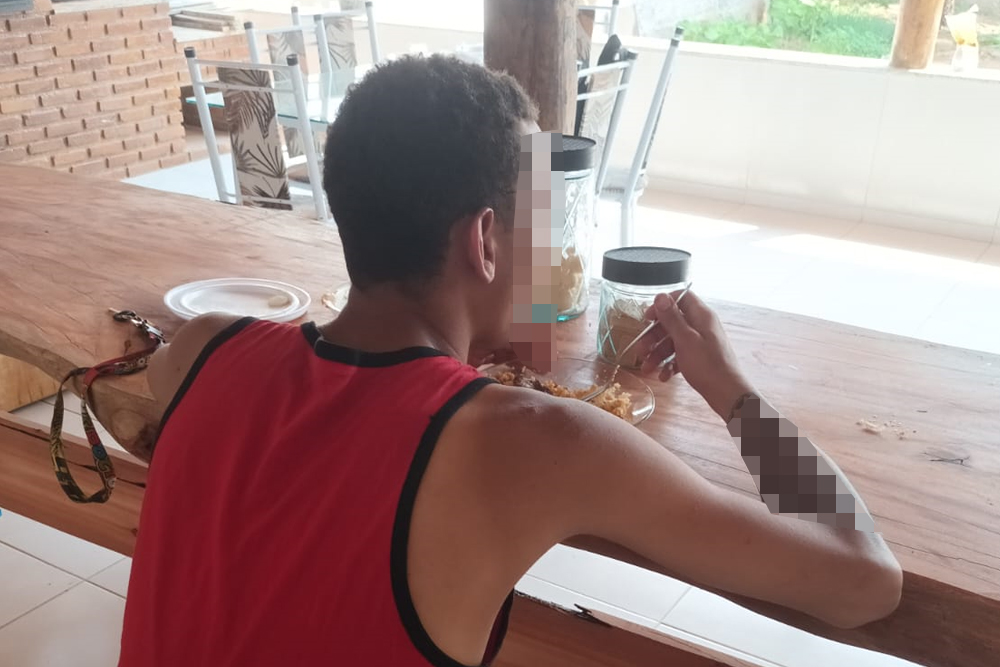 Com base nas informações recebidas, os militares iniciaram o rastreamento. O jovem foi localizado próximo à ponte que divide os municípios de Frei Inocêncio e Mathias Lobato, visivelmente cansado, com fome e sede.