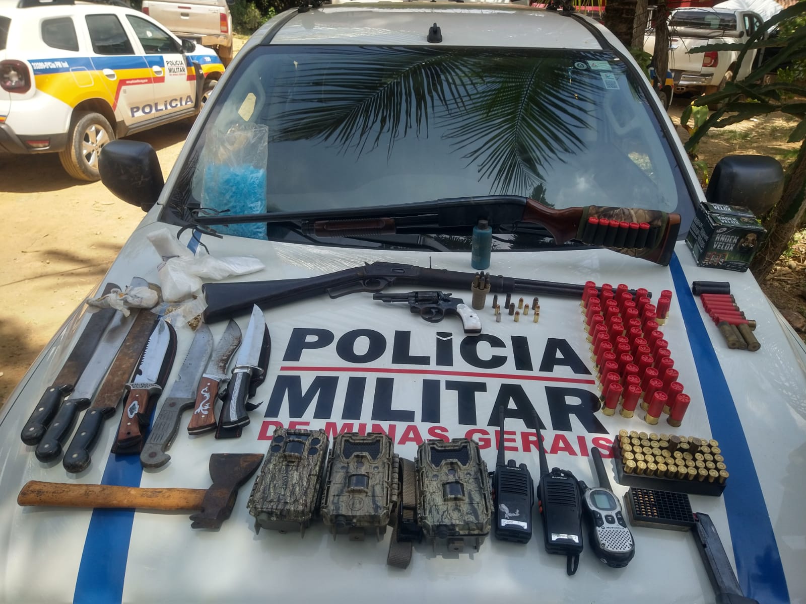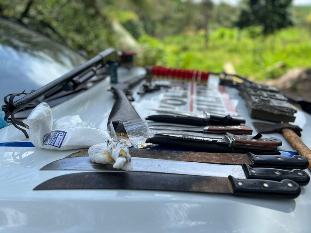 Segundo o 1º Tenente Belizario Lott, da Polícia Militar, o mandado de busca e apreensão aconteceu no local por meio de denúncias. Entre os materiais apreendidos, estão: uma espingarda calibre 12, uma carabina calibre 38, um revoólver calibre 38, centenas de munições, chumbos para espingarda, um carregador de pistola, um jet loader para calibre 38, diversas pedras de crack, três facões, quatro facas táticas, uma machadinha, três rádios de transmissões portáteis e três câmeras de filmagem (produto de furto).
