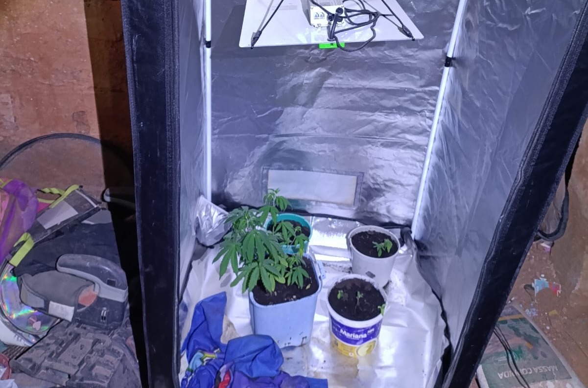 De acordo com os militares, a mulher revelou uma informação que chamou a atenção: no quarto do casal havia uma estufa equipada com um sistema de irrigação, utilizado pelo ex-companheiro para cultivar maconha. Diante da denúncia, os militares realizaram uma inspeção e encontraram oito plantas de maconha em vasos, confirmando a prática ilegal.