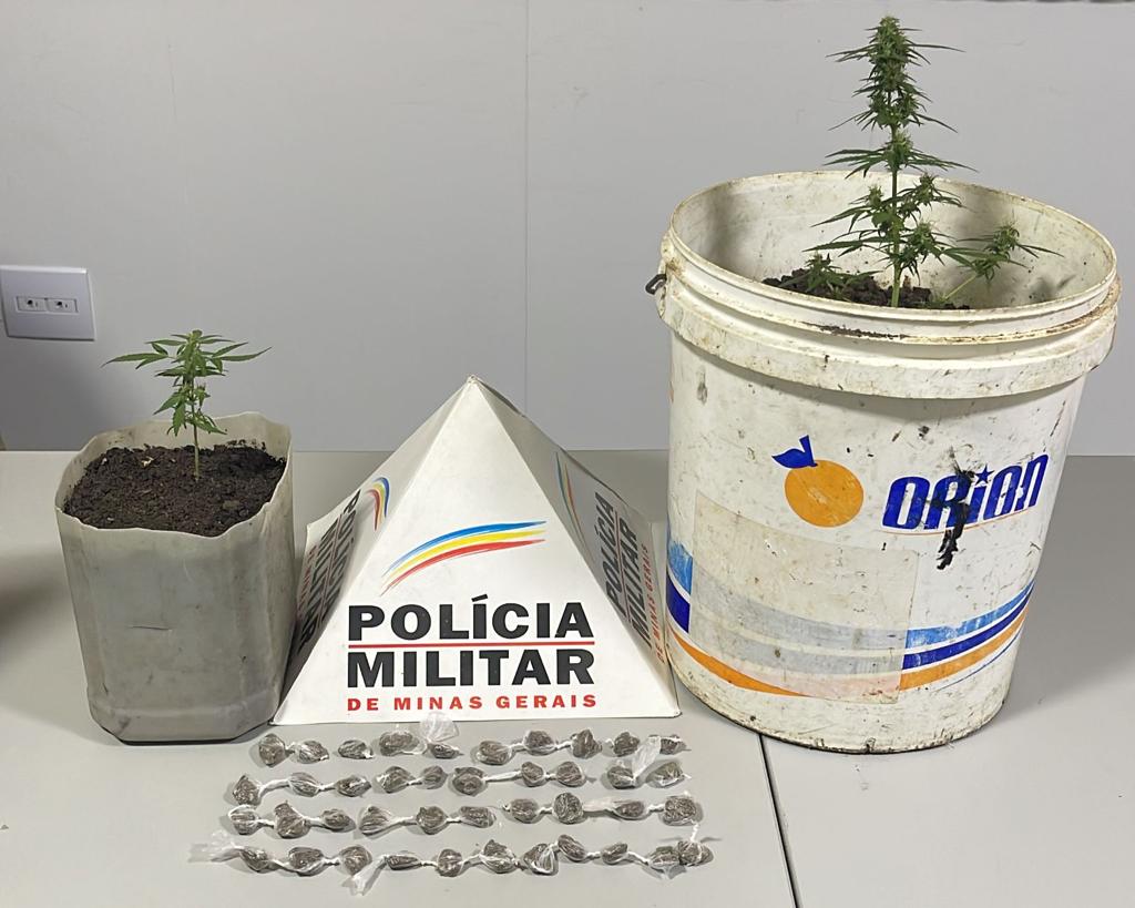 Após chegarem ao local, os policiais encontraram dois vasos contendo pés de maconha e 41 porções de maconha.