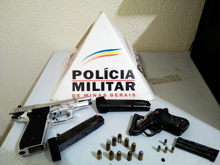 Após a denúncia, os militares se dirigiram à casa do casal, onde encontraram T.F.D., de 60 anos. Ao ser questionado sobre a posse de arma de fogo, ele confirmou, indicando que estava na churrasqueira da casa. Lá foram encontrados uma pistola calibre 380 municiada com cinco cartuchos, além de um carregador de mesmo calibre, com mais cinco munições, e uma calibre 22, com quatro cartuchos.