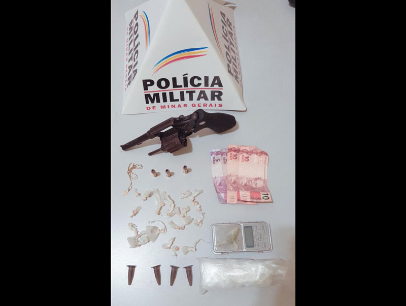A Polícia Militar prendeu um homem de 24 anos suspeito de tráfico de drogas, nessa quinta-feira (7), na rua Gaturamo, no bairro Vila Celeste, em Ipatinga. Com ele foram apreendidos um revólver calibre 38, dois cartuchos novos, um cartucho usado, 30 pedras de crack, um porção de crack, R$30, uma balança de precisão e um cordão dourado.