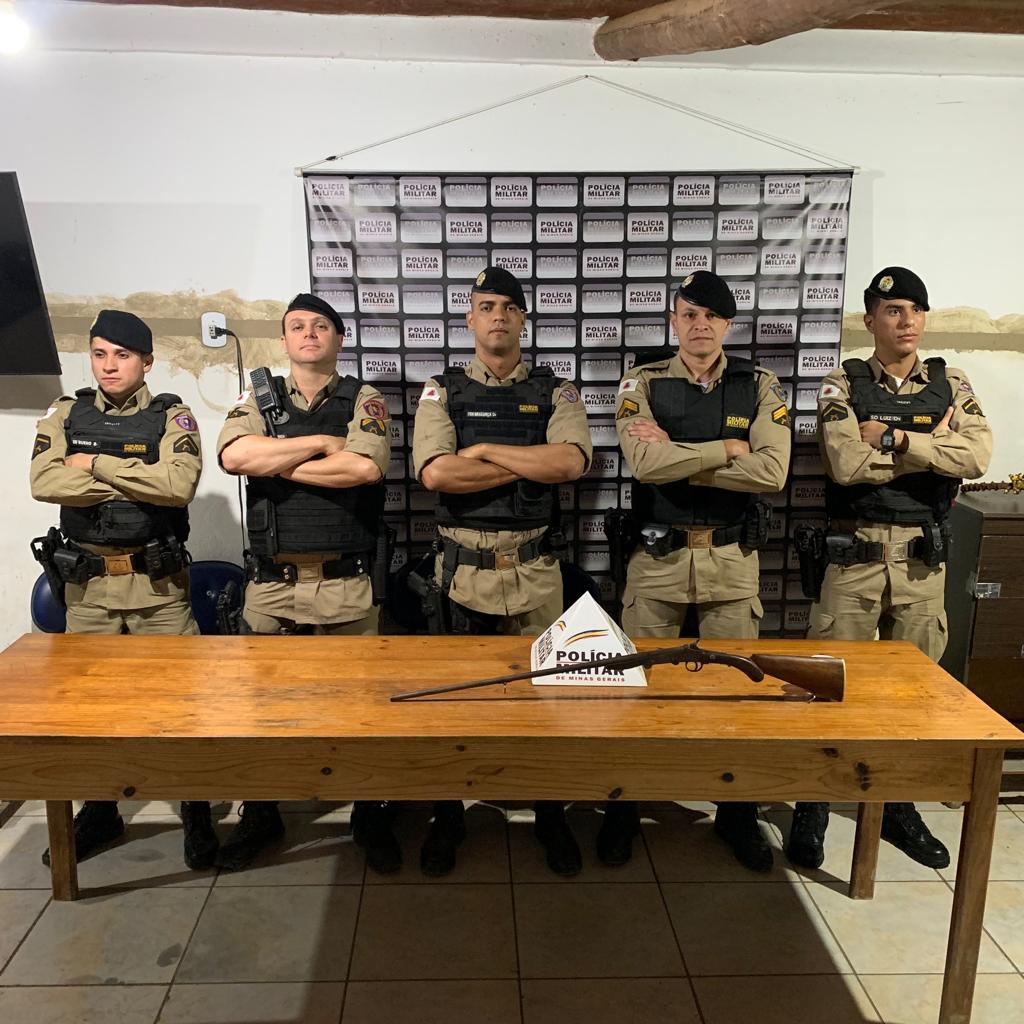 A mãe do suspeito recebeu os policiais na residência. No local, os militares encontraram uma espingarda calibre 36, sem registro.