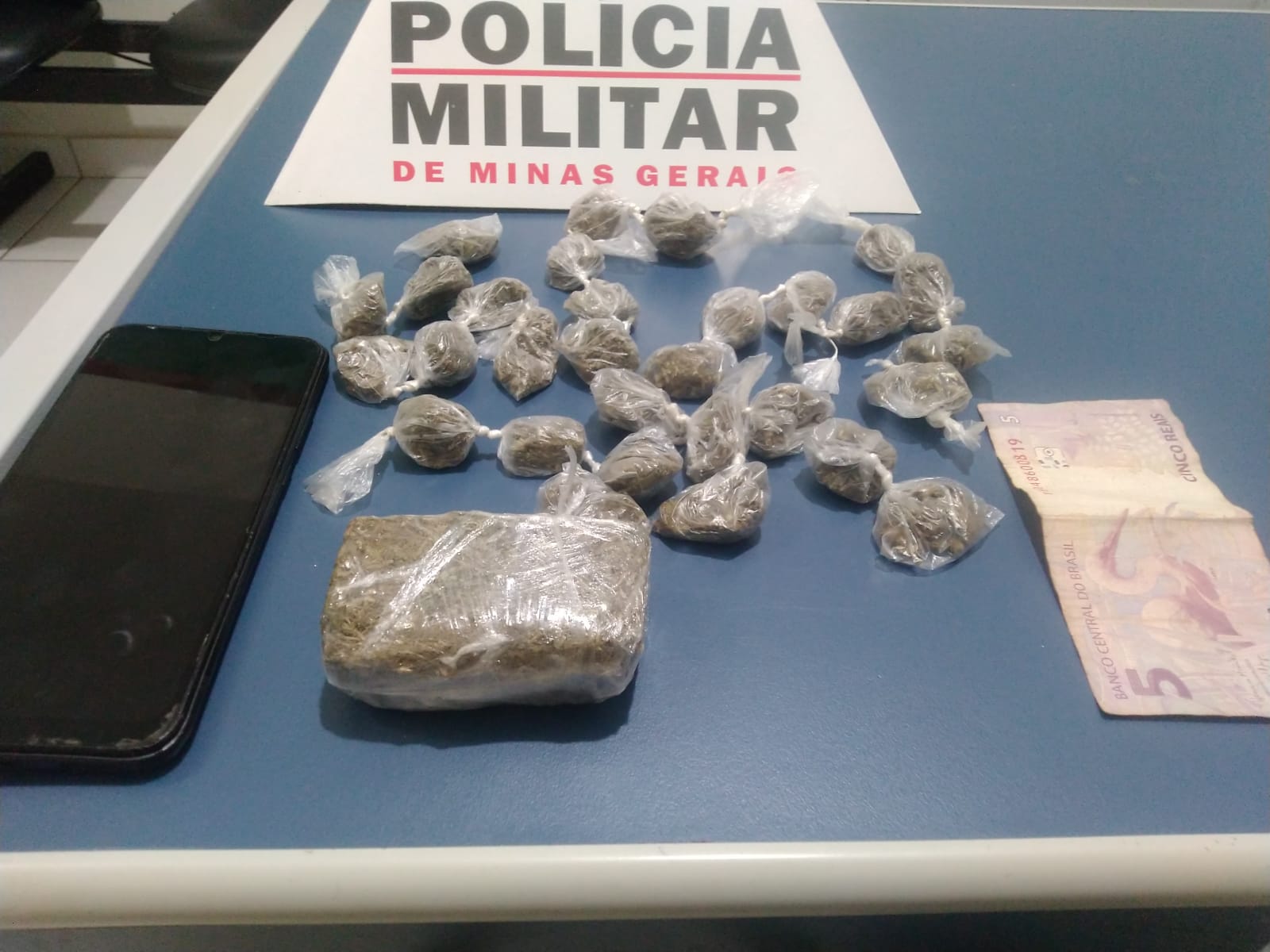 Um jovem, de 20 anos, foi preso por tráfico de drogas, no final da tarde dessa quinta-feira (23), no centro de Pingo D’Água, no Vale do Aço. Segundo a Polícia Militar (PM), com o rapaz, que já tem passagem pela polícia, havia uma barra e 30 buchas de maconha.