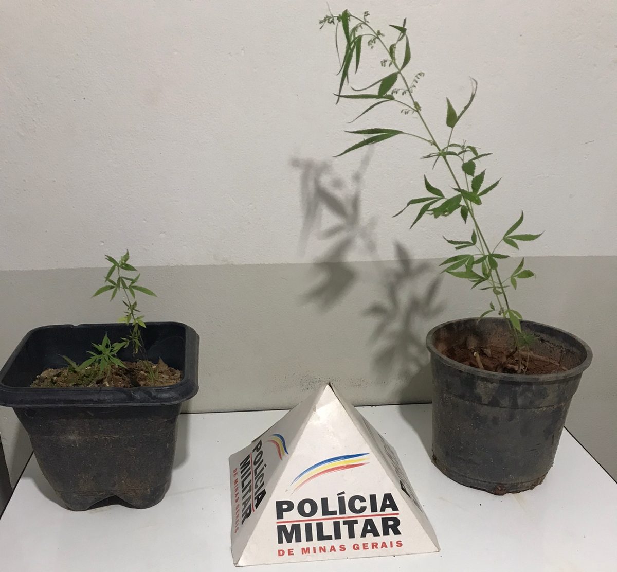 Então a PM foi até o local. Segundo os militares, ao entrar na construção, a equipe encontrou dois vasos contendo pés de plantas semelhantes à maconha. A polícia também relatou ter encontrado, no local, uma carteira com vários documentos pessoais do suspeito e duas notas de US$ 1 (um dólar).