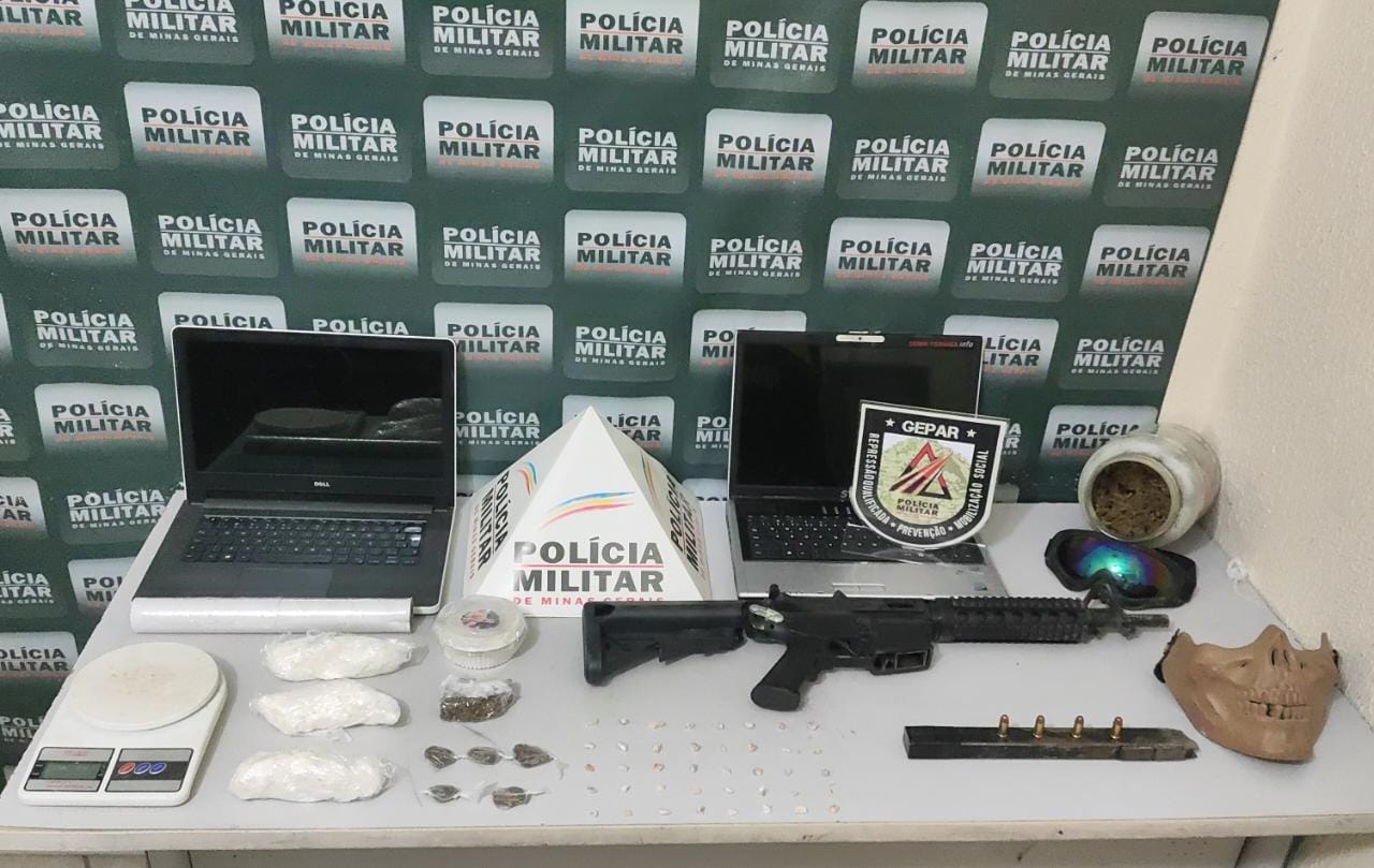 De acordo com os militares, a equipe montou uma operação e foi até o endereço. No local, a polícia encontrou uma submetralhadora com carregador alongado, quatro munições intactas, um tablete e uma porção de maconha, 40 pedras de crack, três porções de cocaína, dois notebooks e diversas embalagens para entorpecentes.