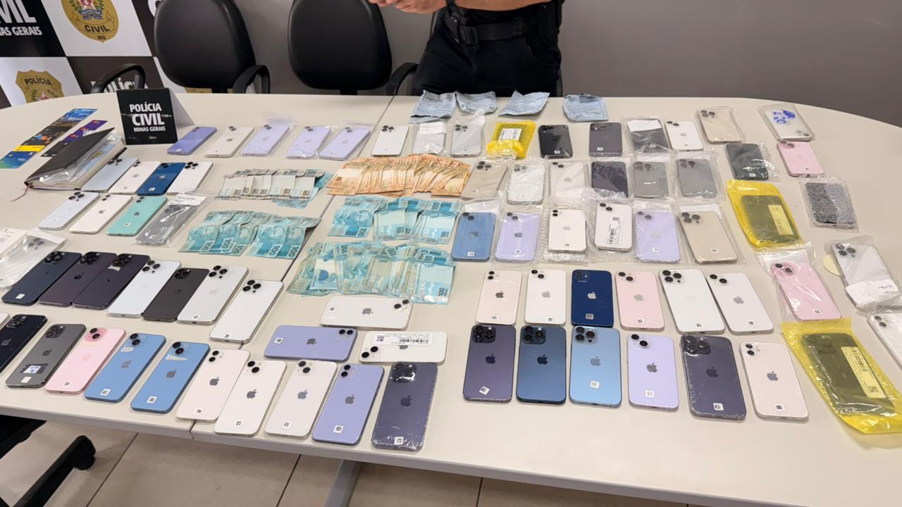 TEÓFILO OTONI – A Polícia Civil de Minas Gerais apreendeu 78 aparelhos iPhone e R$ 10.400 em dinheiro durante o cumprimento de mandados de busca na residência de um investigado em Teófilo Otoni, no Vale do Mucuri. A ação foi realizada pela Delegacia Especializada em Repressão a Furtos e Roubos do município.