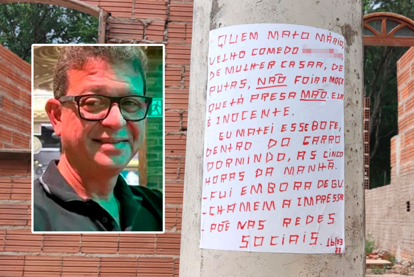 A Polícia Civil apreendeu, nessa sexta-feira (17), dois cartazes com dizeres ligados ao homicídio do empresário Mário Cézar Pereira, de 60 anos. Os cartazes estavam pregados em dois postes, próximos ao local do homicídio, na estrada do pico da Ibituruna, em Valadares. Segundo a Polícia Civil, a principal suspeita do homicídio é a companheira do empresário. Ela está presa desde o dia 8 de fevereiro.