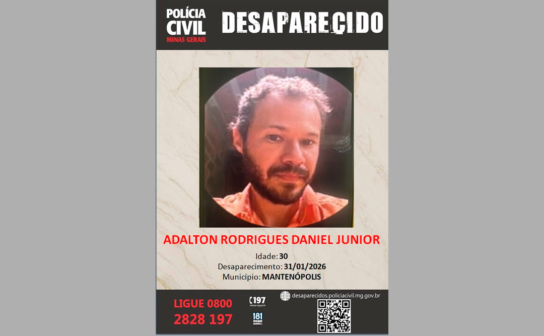 De acordo com as autoridades, Adalton saiu de casa sem informar para onde iria e não foi mais visto. Embora o desaparecimento tenha ocorrido em solo capixaba, a família procurou o apoio da PCMG para o registro da ocorrência e o início das buscas formais.