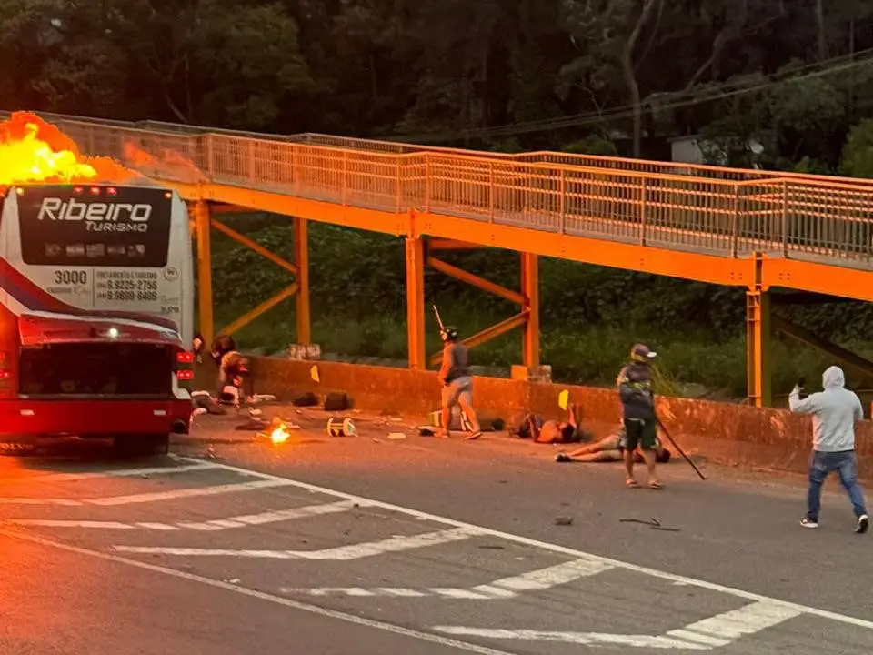 O ataque a dois ônibus onde estavam torcedores da Máfia Azul deixou um morto e cerca de 20 feridos. O motoboy José Victor Miranda, 30, foi agredido e sofreu queimaduras pelo corpo, conforme a PRF (Polícia Rodoviária Federal), responsável pelo policiamento na via. Um dos veículos atacados foi incendiado e o outro, depredado.