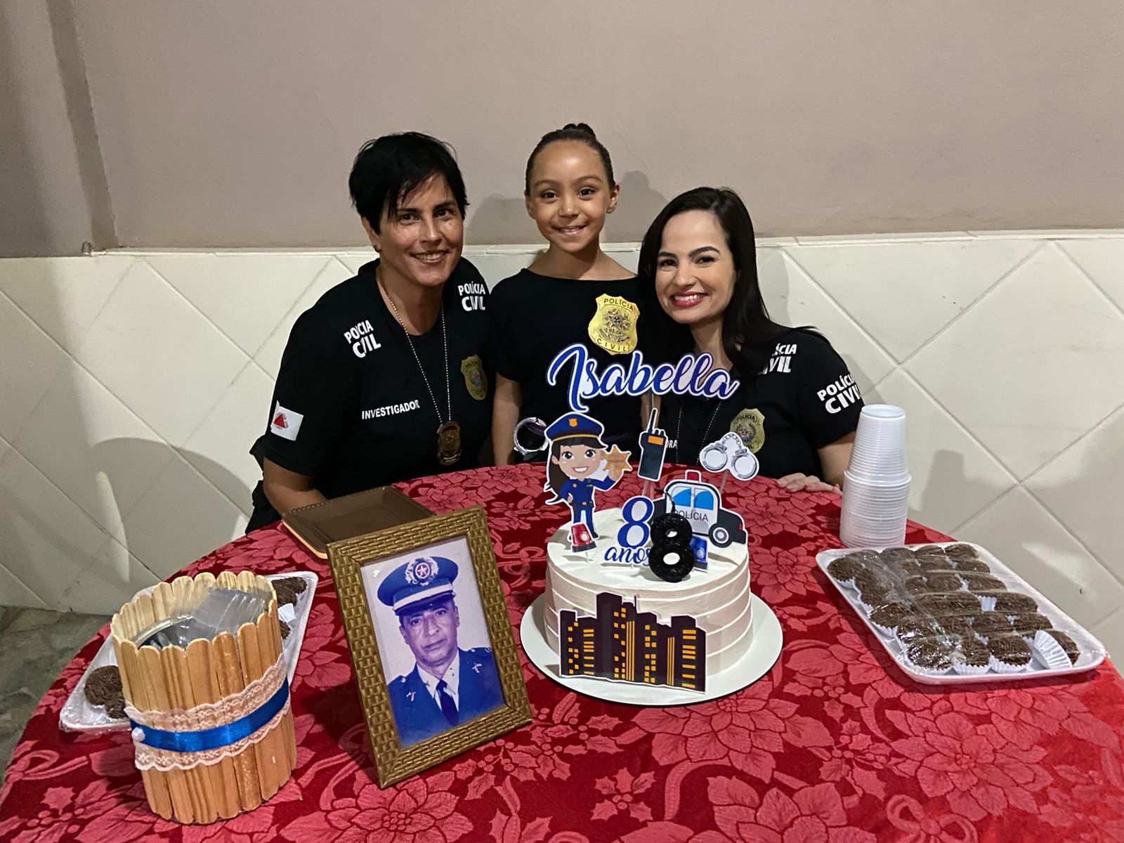 A Polícia Civil de Minas Gerais (PCMG) realizou uma missão diferente nessa quinta-feira (30). Policiais compareceram à festa de aniversário de Isabella Costa Ribamar, para alegrar a comemoração. A criança, que completou oito anos, sonha em ser delegada e fez o tema da festa sobre a Polícia Civil.