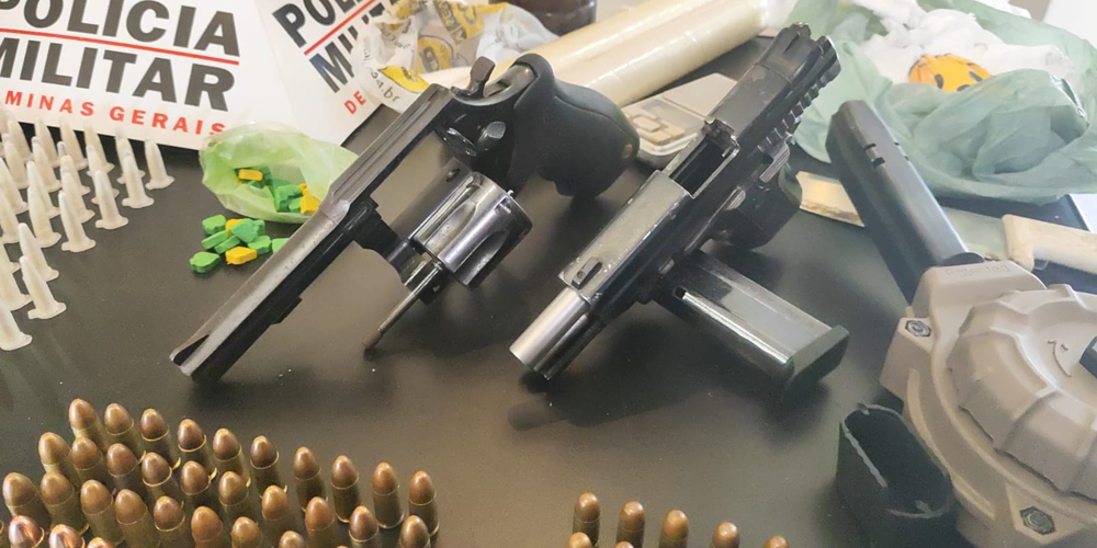 Também foram localizados uma pistola calibre .380 carregada com 11 munições, um revólver calibre .38 carregado com 4 munições, um carregador tipo caracol de arma calibre 9mm carregado com 22 munições e mais 19 munições calibre 9mm. Todo o material estava em uma área de lote nos fundos do endereço da ocorrência, que permite acesso às residências vizinhas, incluindo a casa do traficante.