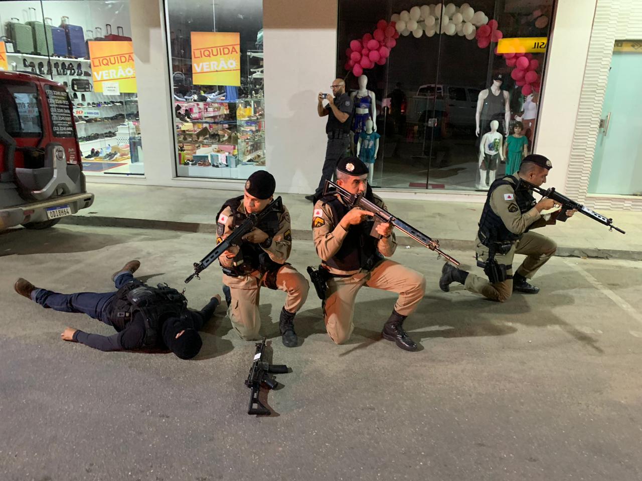 A Polícia Militar realizou um treinamento de simulação a ataques a instituições financeiras, em Mantena, nessa quinta-feira (23). Órgãos de segurança pública, como a Polícia Civil e Polícia Penal, acompanharam o simulado de explosão a caixas eletrônicos. A iniciativa teve o objetivo de aprimorar as ações dos operadores de segurança, de forma integrada, aliando o uso de técnicas e táticas policiais.