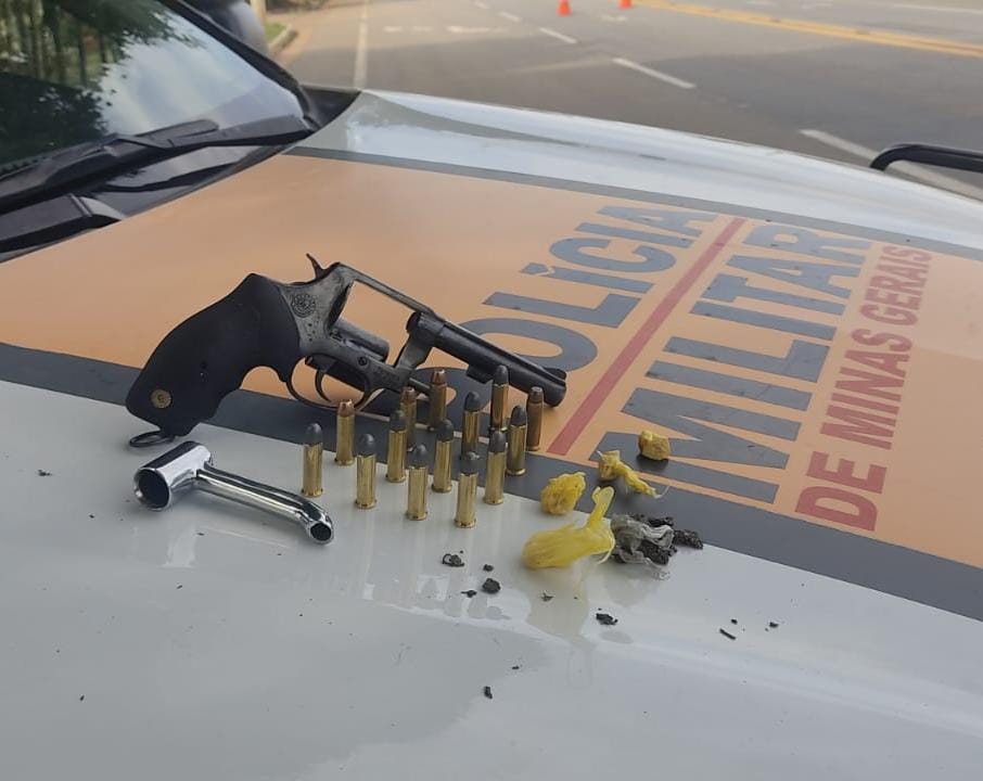 • Um revólver calibre 38, municiado com cinco cartuchos;