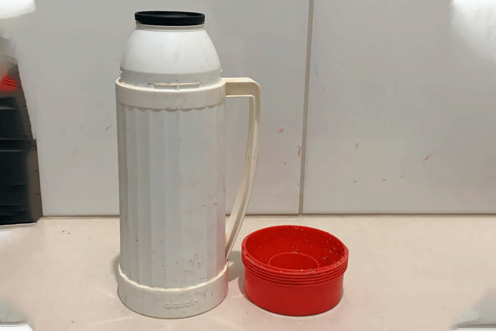 Então a partir disso, os policiais deram ordem para o suspeito parar. Os militares abordaram o homem e realizaram uma busca pessoal. No guidom da bicicleta, os policiais pegaram uma garrafa térmica. Dentro do recipiente eles encontraram uma barra de maconha.
