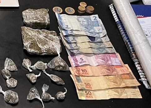 • Duas tabletes e 12 buchinhas de substância semelhante a maconha