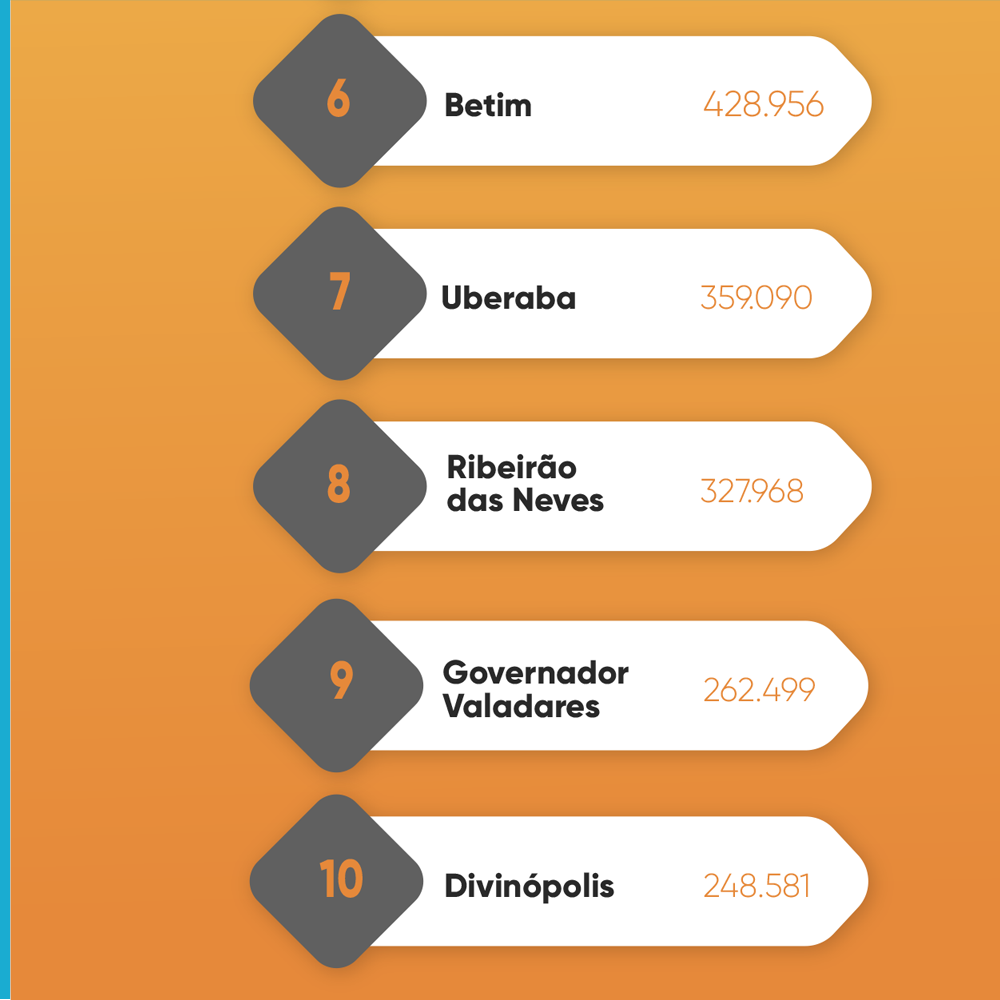 O ranking dos municípios mais populosos do Estado é liderado pela capital mineira, com mais de dois milhões de habitantes. Belo Horizonte concentra mais de 10% da população de Minas Gerais, com 2.392.678 habitantes. Veja, portanto, a lista dos 10 municípios mais populosos do Estado, segundo a prévia do Censo 2022.