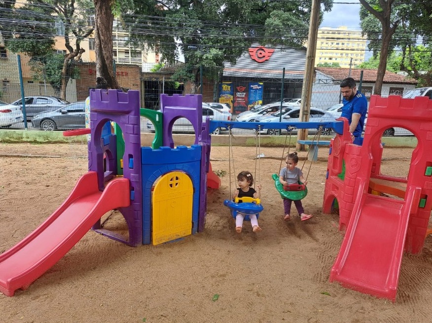 Helnatã Campos, pai da pequena Valentina, de dois anos, também destacou a segurança dos novos brinquedos. “Antes, aqui só tinha espaço para as crianças maiores. Agora, este novo parquinho dá oportunidade para os pequenos. Como no outro brinquedo não tem proteção, a gente não tinha segurança para deixá-los brincar”, contou o pai.