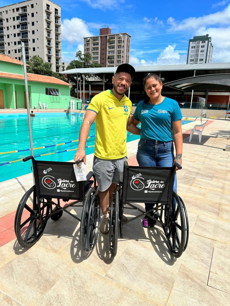 A Praça de Esportes recebeu a doação de duas cadeiras de rodas. A iniciativa, aliás, foi da “Galera do Lacre”, organização sem fins lucrativos que recolhe lacres de latinhas para trocar por cadeiras de rodas. As cadeiras serão utilizadas para atender os alunos idosos. Atualmente, a Praça de Esportes tem cerca de 1.400 alunos idosos nas aulas de hidroginástica.