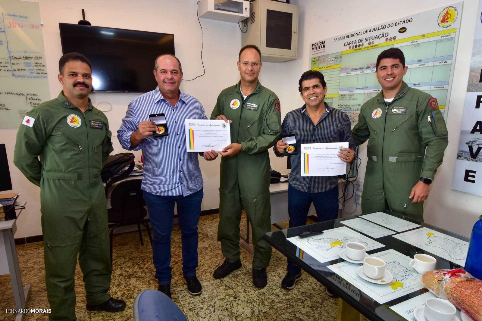 O prefeito de Valadares, André Merlo, esteve na 5ª Base Regional de Aviação do Estado (5ª Brave) para a homenagem ao Tenente-Coronel Eduardo, que está deixando o posto de coordenador da Base, nessa terça-feira (31).
