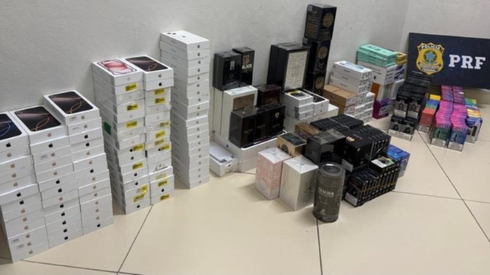 A apreensão ocorreu durante a abordagem de um ônibus que fazia o trajeto entre as cidades de São Paulo e Ipatinga. Durante a fiscalização no compartimento de carga e no interior do veículo, os policiais encontraram 116 aparelhos celulares, cinco iPads, 21 perfumes e 243 cigarros eletrônicos sem qualquer documentação fiscal.